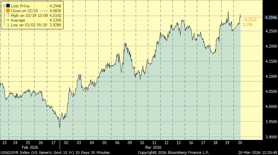 Otra semana de mucha volatilidad y aversión al riesgo después de que Israel atacase el campo de gas iraní South Pars, el más grande del mundo, y que supone un paso más en la escalada bélica, ha sido la primera infraestructura energética clave bombardeada. Irán respondió amenazando verbalmente a toda la infraestructura energética del Golfo y lanzando misiles sobre el complejo catarí Ras Laffan, que alberga la mayor planta de gas natural licuado (GNL) del mundo, responsable del 20% del suministro global de GNL. La consecuencia ha sido el aumento de los precios del petróleo y del gas, que se trasladó a las rentabilidades de la deuda, con subidas de rentabilidad de los bonos soberanos. En Estados Unidos el aumento de rentabilidades fue superior, con el Bono a 10 años cotizando actualmente a 4,30% de rentabilidad, tras un tono de la Fed más duro de lo esperado, a pesar de que mantuvo los tipos de interés sin cambios. La elevada volatilidad y los mensajes cambiantes de las partes implicadas hacen que el escenario, en todos los mercados (divisa, materias primas, bolsas, bonos…), pueda cambiar de forma abrupta en cuestión de minutos…