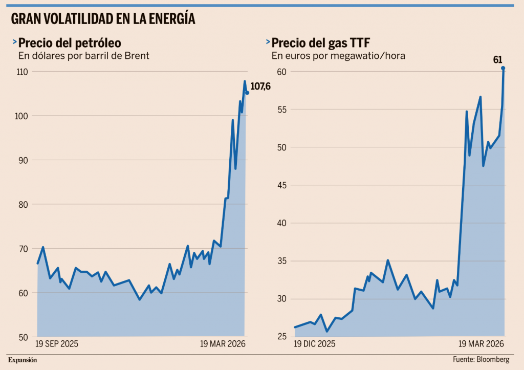 Los precios de la energía se volvieron a disparar ayer tras los ataques de Irán contra las instalaciones clave en la región, en represalia por el bombardeo contra su principal planta de gas el miércoles, si bien el petróleo acabó la sesión en mínimos del día después de las palabras del presidente de Estados Unidos, Donald Trump, hablando del próximo final de la guerra. El hecho de que la guerra se enquiste y ya esté dejando cicatrices duraderas en las infraestructuras energéticas eleva la alerta sobre la posibilidad de un fuerte impacto en el comercio y la economía mundiales, tal como alertó ayer la Organización Mundial del Comercio.