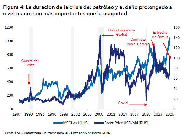 Un ámbito que merece especial atención es el de la agricultura y la alimentación. Los costes energéticos están estrechamente relacionados con los precios de los alimentos a lo largo de toda la cadena de suministro, desde la producción de fertilizantes hasta el procesamiento y el transporte. En muchos países asiáticos, la energía y los alimentos representan una parte mucho mayor de la cesta del IPC que en Occidente. Las repercusiones en este ámbito podrían ser significativas si el conflicto se prolonga.