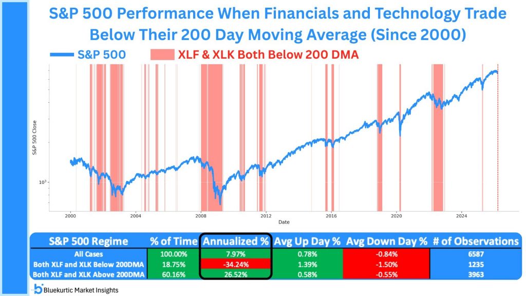 Cuando el sector tecnológico y el financiero cotizan por debajo de sus medias de 200 sesiones suele ser históricamente una señal bajista para la Bolsa: