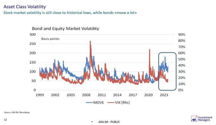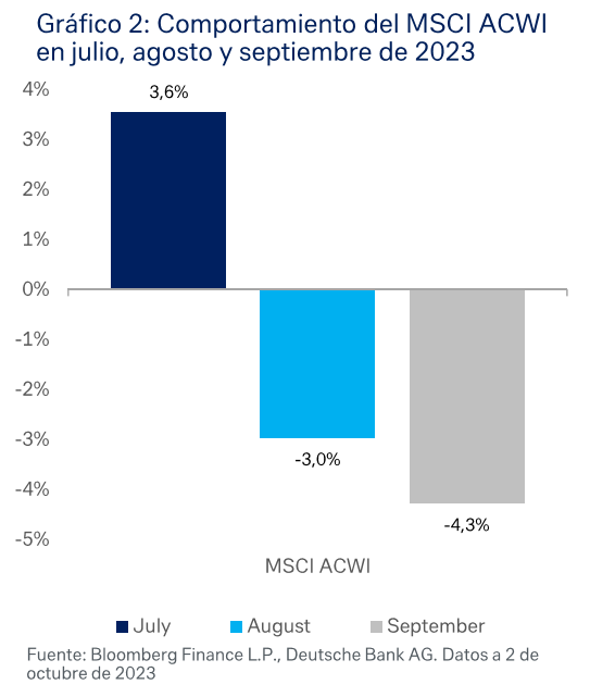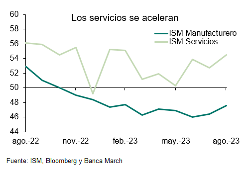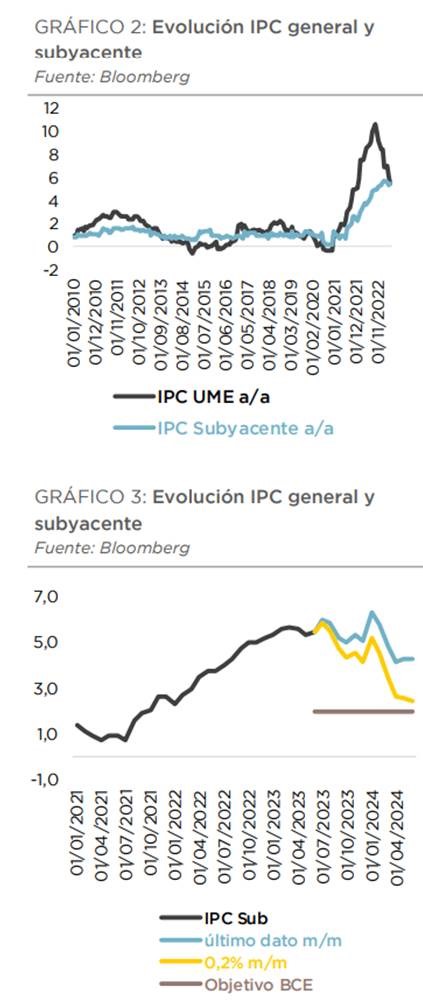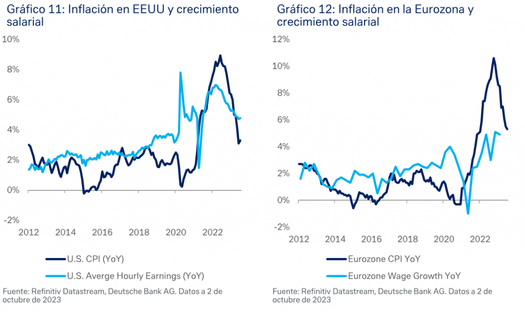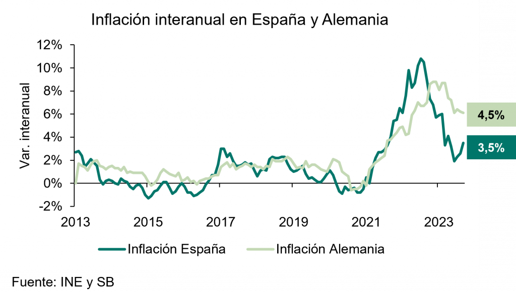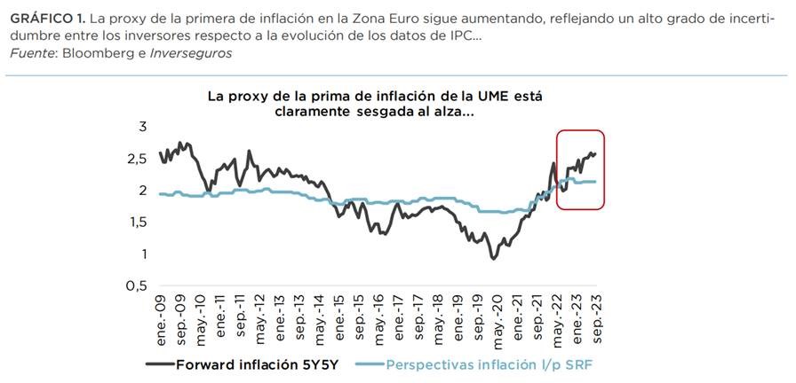 Esta semana en Alemania conocimos el Índice IFO de confianza empresarial, que sorprendió aumentando más de lo esperado y marcando la primera subida en cinco meses hasta 86,9 frente al 86 esperado por el mercado y 85,8 anterior revisado al alza, debido a que las empresas se mostraron más optimistas respecto a las expectativas de cara a los próximos meses, 84,7 (83,5 esperado y 83,1 anterior revisado también al alza), así como con relación a su situación actual 89,2 (88,5 esperado y 88,7 anterior). Desde que comenzó la guerra en Ucrania, la economía alemana está atravesando un período de estancamiento. Desde el primer trimestre del 2021 la inversión en construcción ha sido la partida más contractiva junto al gasto público, mientras que la inversión en bienes de equipo ha mostrado un notable dinamismo teniendo en cuenta el contexto. El IFO de octubre sigue estancado en niveles bajos que perfilan contracción de la economía alemana para el último trimestre de este año. El sector manufacturero alemán tiene que hacer frente a la decepcionante recuperación de la economía China y a un drenaje de inventarios (tras la fuerte acumulación durante la pandemia). Sigue habiendo riesgos a la baja para el PIB alemán del año que viene 2024 donde el gasto público podría ser algo más expansivo para compensar el lastre de las subidas de tipos. A medio largo plazo Alemania seguiría teniendo grandes retos, la energía y la competencia en vehículo eléctrico desde China, que a la vez es uno de sus principales mercados para la exportación.