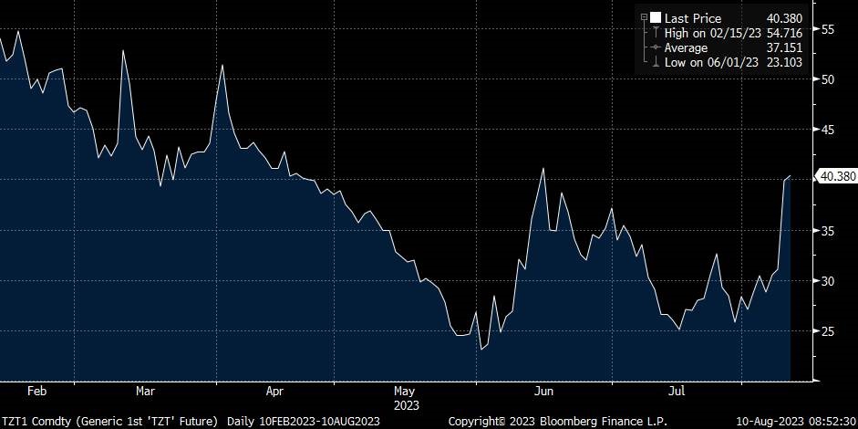 El del gas natural es otro mercado a vigilar. En 2022, Oriente Medio proporcionó alrededor del 18% del suministro global de gas, con Irán (6,3%), Qatar (5%) e Israel (0,5%) desempeñando roles significativos. Interrupciones menores ya han ocurrido, como el cierre del yacimiento de gas de Tamar en Israel por razones de seguridad, que representaba el 1,5% del gas natural licuado (GNL) mundial el año pasado. Si permanece cerrado, el suministro en el noroeste de Europa podría disminuir en casi un 3% en este cuarto trimestre, lo que haría al mercado del gas más vulnerable a crisis adicionales o un invierno más frío de lo previsto.