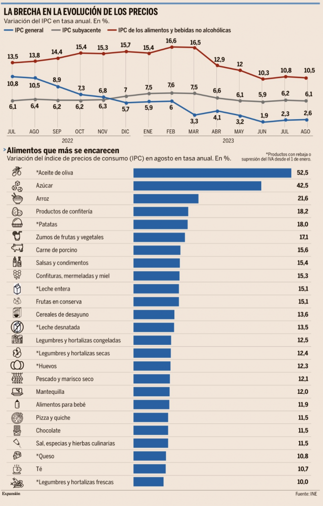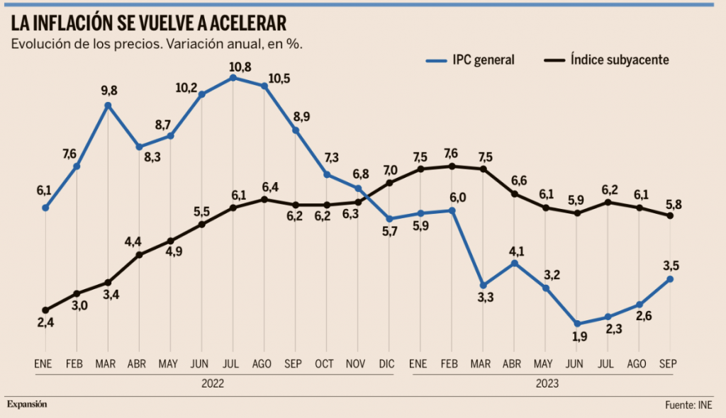 Y si bien la OCDE es algo más optimista que otros organismos sobre la inflación, avisa de que ésta seguirá siendo elevada, con un IPC medio del 3,5% este año y un repunte hasta el 3,7% en 2024.