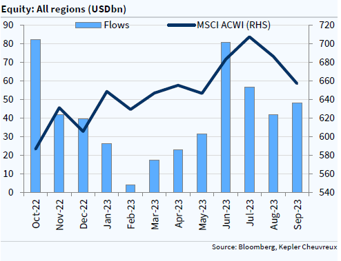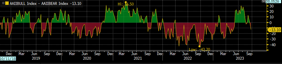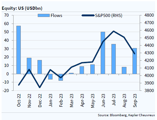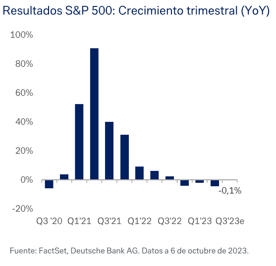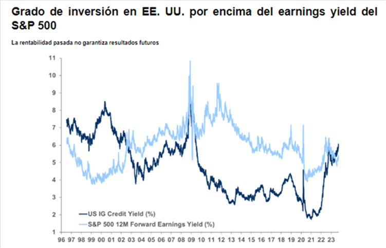 Pese a lo que se puede creer, las compañías del S&P 500 se están beneficiando de los mayores tipos de interés debido a que el perfil de deuda es muy sano, con un vencimiento medio en 2035 y tan sólo el 6% de la deuda está emitida a tipo flotante, y pueden invertir el exceso de liquidez a tipos de interés altos. Tras la corrección que hemos visto el sentimiento inversor está muy deprimido, mientras que las revisiones de beneficio empresarial siguen mejorando. Creemos que la Renta Variable podría tener un rebote de cara a final de año.
