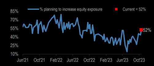 De hecho una última encuesta de JPMorgan entre inversores institucionales muestra cómo la mayoría están incrementando, o planean incrementa su exposición a renta variable.