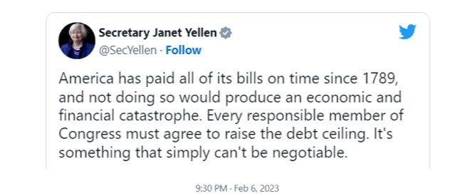 Durante los próximos meses será noticia la posibilidad de que EE. UU. impague su deuda si no consigue aumentar su «techo de deuda». La secretaria del Tesoro, Janet Yellen, ha instado a todos los miembros del Congreso americano a llegar a un acuerdo para evitar que EE. UU. impague su deuda por primera vez desde 1789.