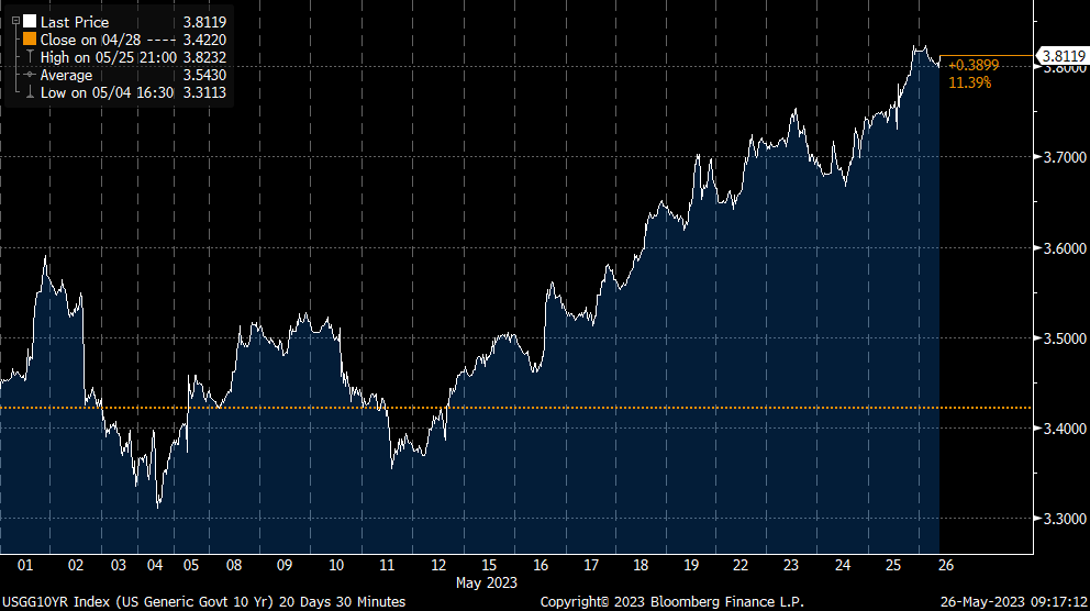 La reunión entre Biden y McCarthy (Presidente de la Cámara de Representantes) para debatir entorno al techo de deuda se retrasó hasta la semana que viene. Los medios interpretan este hecho como una señal de que las negociaciones a niveles inferiores están progresando.
