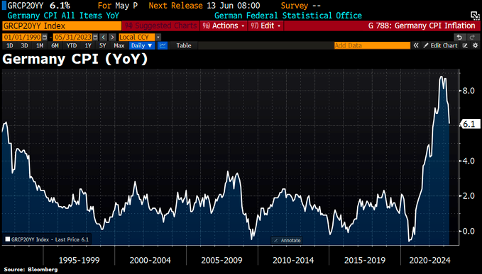 En Alemania ayer decepcionó el dato de inflación, en junio el dato preliminar del IPC armonizado registró una aceleración de cinco décimas hasta un avance del +6,8% interanual, un dato que seguiría poniendo presión al alza a la inflación del conjunto de la zona euro.