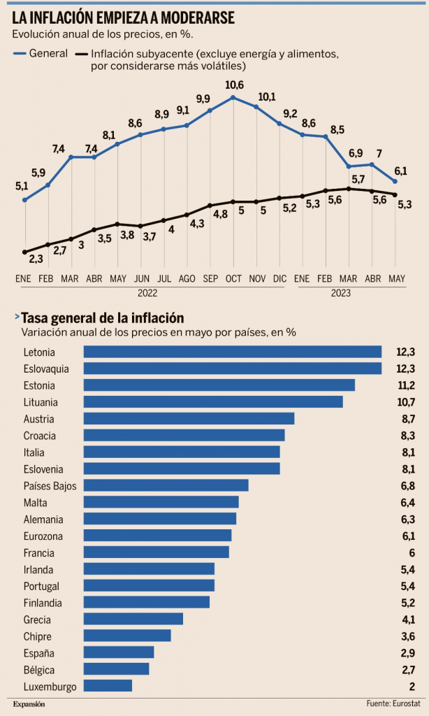En Estados Unidos miembros de la Fed como Chris Waller se aventuran ya a decir que quedan a lo sumo un par de subidas de tipos de interés más para llevar la inflación al nivel objetivo del 2%. Parece claro, no obstante que la Fed moverá ficha en la próxima reunión de julio y subirá otros 25 puntos básicos los tipos de interés.