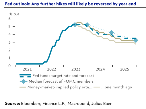 Tras el verano, una vez analizado el impacto real de la subida de tipos y la crisis bancaria en la economía estadounidense, el banco central se plantearía diseñar su nueva hoja de ruta de cara al último trimestre del año. Las previsiones apuntan a que los primeros recortes en los tipos no llegarían antes de diciembre.