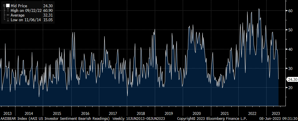 Según una encuesta del Wall Street Journal, los economistas han reducido la probabilidad de recesión de cara a los próximos 12 meses desde el 61% al 54%. Por su parte, el modelo de PIB elaborado por la Fed de Saint Louis prevé un crecimiento del 1,1% en el 2T23 frente al 0,3% estimado anteriormente.