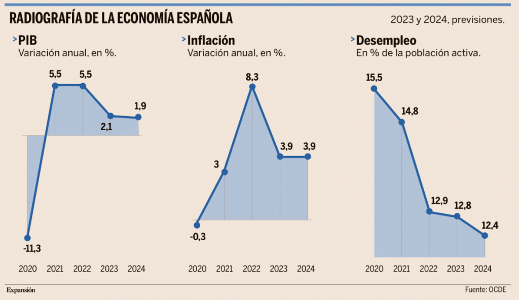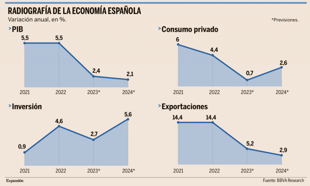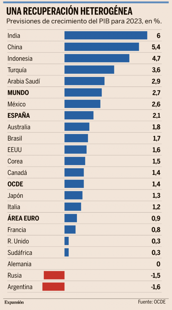 En el contexto internacional, si bien la OCDE ha mejorado, en su última revisión de hace algunas semanas, el dato de crecimiento de 2023 tanto del mundo (3,2%), de la zona euro (0,8%), de Estados Unidos (1,5%, un punto más que la previsión anterior), de España (1,7%, cuatro décimas más que la anterior previsión) o de China (5,3%, siete décimas más que la anterior previsión), dicho crecimiento sigue siendo muy volátil y sobre un movimiento coyuntural, no sobre un cambio de tendencia. Adicionalmente, además de rebajar el dato de crecimiento para Japón, Corea del Sur, Brasil, Argentina o Turquía, la OCDE señala que la inflación sigue siendo preocupante.