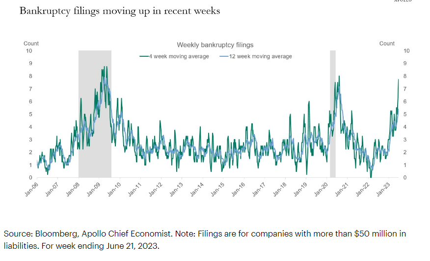 Otro dato que me ha llamado la atención ha sido el de los datos semanales de quiebras en Estados Unidos que publica Apollo,que se están acelerando en las últimas semanas.