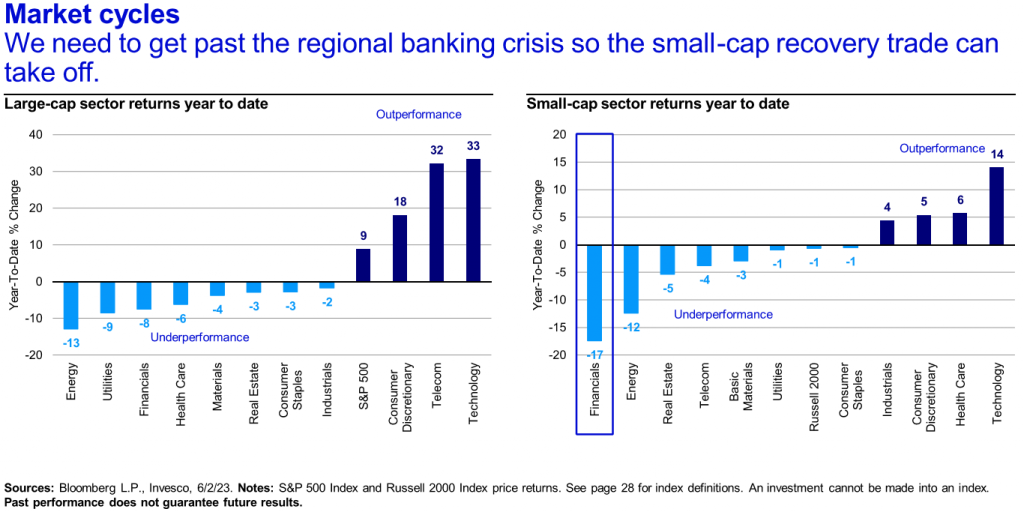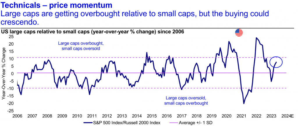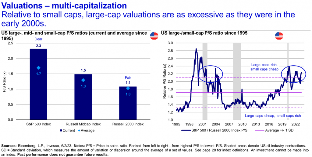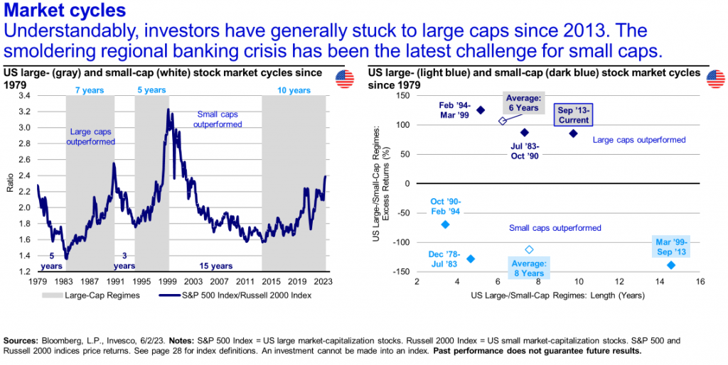 Esta semana ha publicado Invescoun informe de estrategia muy interesante (David vs. Goliath: The battle of the size cycle), en el que analiza el ciclo actual del mercado en el que se inclina porque las pequeñas compañías lo empezarán a hacer mejor que las compañías más grandes, después de 10 años de peor comportamiento y de lo barato que están los índices de small caps.