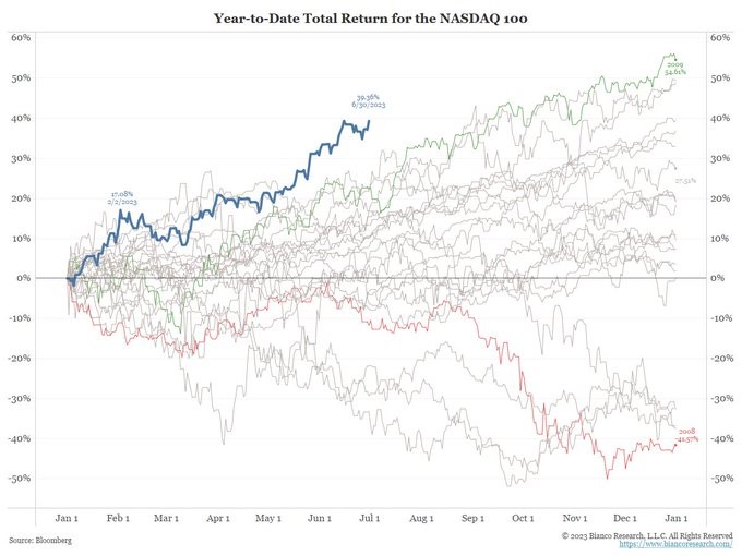 Como decía la semana pasada el Nasdaq 100 ha tenido su mejor comienzo de año desde 1999.