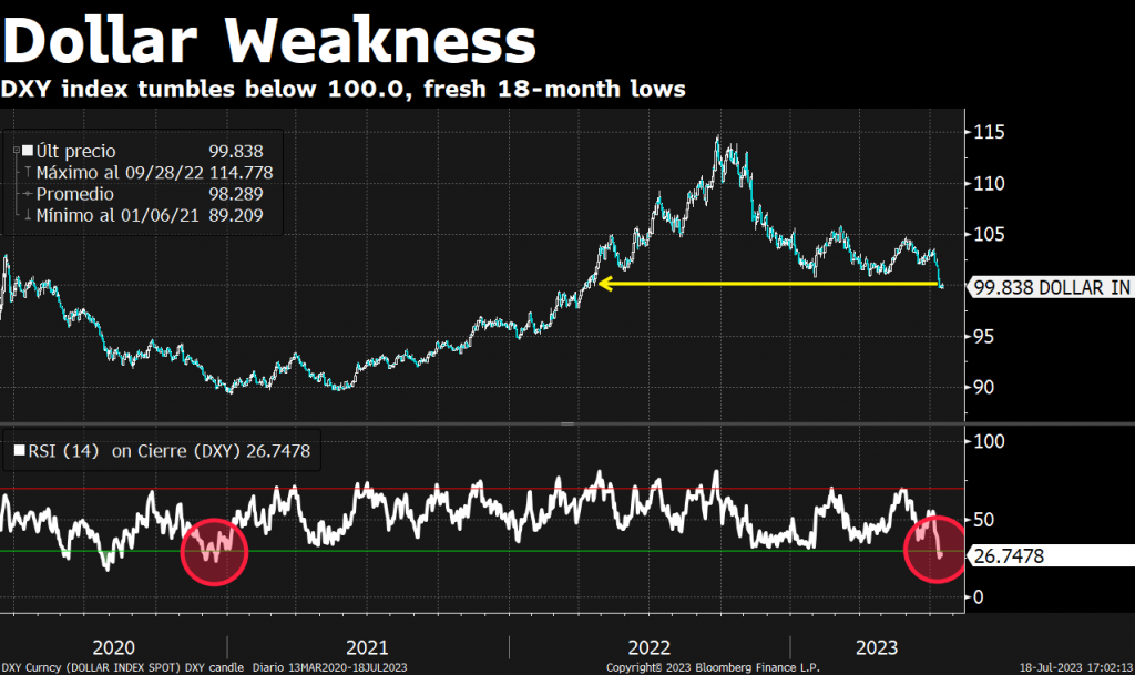 El dólar cae esta semana perjudicado por la perspectiva de que la Fed pueda iniciar el proceso de bajada de tipos, registrando una depreciación en términos de cesta de divisas del -0,5% al caer contra todas las monedas del G10 y contra las divisas emergentes, a pesar de los menores precios de las materias primas.