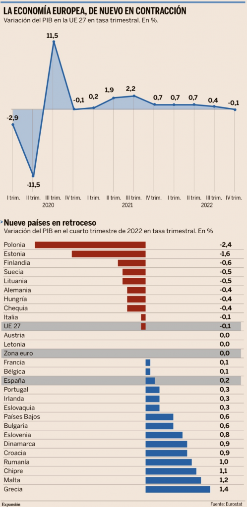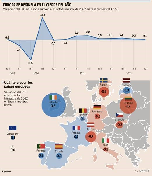 Como digo los datos de crecimiento que se están publicando en Europa este comienzo de año sobre el último trimestre del 2022 constatan que Europa se está produciendo un parón económico, con seis países en contracción al cierre del 2022.
