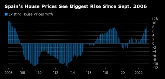 El precio de la vivienda en España tuvo en enero su mayor subida desde la burbuja inmobiliaria del 2006. Los precios subieron un 9% en Enero de acuerdo con el Índice Inmobiliario Fotocasa. Ese es la mayor subida desde Septiembre del 2006. Según ese índice el precio de la vivienda de segunda mano en España cerró 2022 con un incremento anual del 7,5%. Así, la subida anual de este 2022 (7,5%) es la séptima registrada en el Índice Inmobiliario Fotocasa en sus 17 años de análisis y es la tercera más abultada de estos años, después del 7,8% registrado en 2018 y del 7,7% registrado en 2006.