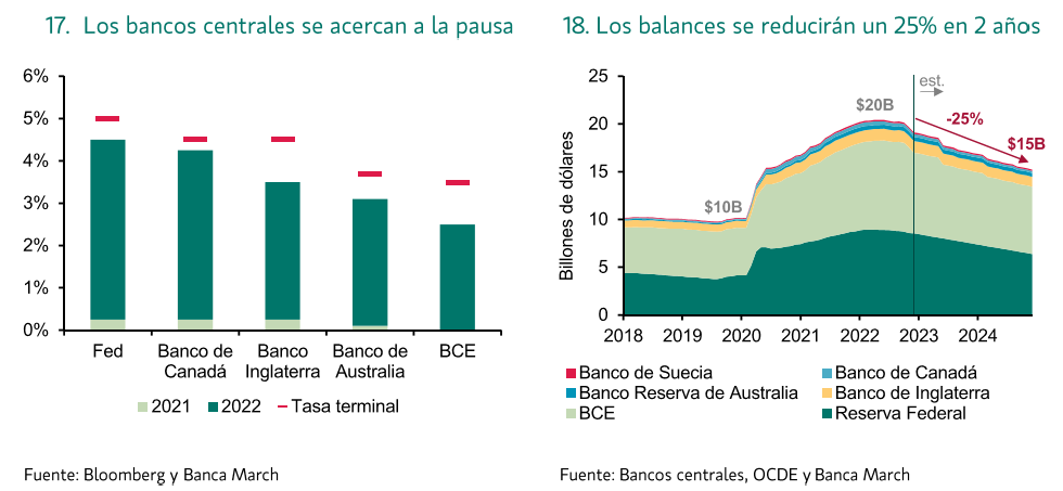 El FMI cree que los tipos de interés reales volverán a niveles prepandémicos tras controlar la inflación, en su último informe, Perspectivas de la Economía Mundial, cree que los bancos centrales de las economías avanzadas flexibilizarán la política monetaria en cuanto se controle la inflación, hecho que devolverá los tipos reales a niveles previos a la pandemia. Esto ocasionaría la reaparición de límite inferior efectivo de los tipos de interés, normalizando el uso de políticas no convencionales a través de la gestión activa de los balances de las autoridades monetarias.