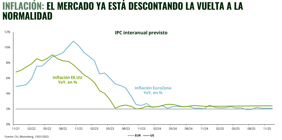 La reapertura de China (previamente completamente cerrada por temas COVID) podría darle un empujón al crecimiento global, pero a diferencia del 2009 cuando la economía China ayudo al mundo a recuperarse del colapso financiero mundial, esta vez, ese empujón podría afectar a los niveles de inflación a nivel global justo cuando la FED y otros bancos centrales mundiales parecen estar restableciendo niveles “normales” a base de subidas de tipos. De hecho, Kristalina Georgieva, jefa del IMF, dijo tener precisamente esta preocupación hace no muchos días en el Forum de Davos. Según modelos de Bloomberg que tienen en cuenta la relación entre el crecimiento del GDP Chino, los precios de la energía y sus efectos en la inflación global; un crecimiento en China del 5.8% en 2023 (a esto apuntan las estimaciones – fue un 3% en 2022) podría aportar hasta un +1% en el último cuarto del 2023 a la inflación global…sin embargo, si el crecimiento de China fuera mayor, como por ejemplo un 6.7%, estaríamos hablando de un 2%.