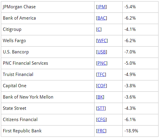 S&P 500 Banks Total Return Index -11,97% YTD:
