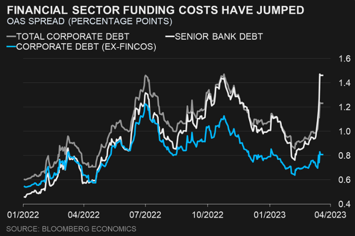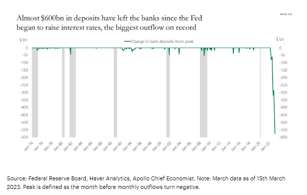 El riesgo de que se produjera una fuga generalizada de depósitos de bancos similares era evidente, especialmente cuando, inmediatamente después de la quiebra Silicon Valley Bank, Signature y Silvergate, un cuarto, First Republic, se vio contra las cuerdas. La combinación de un seguro de depósitos ilimitado para los bancos en quiebra y un rescate parcial de la gran banca para ayudar a First Republic contribuyeron a detener el pánico. Sin embargo, el shock no se ha eliminado.