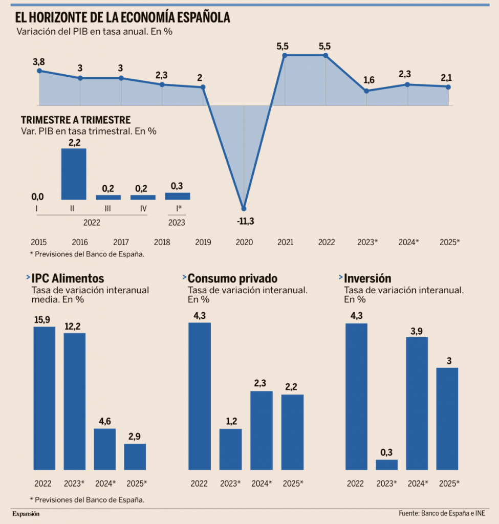 De hecho, en la zona euro, las previsiones de crecimiento para el próximo año han empeorado de forma generalizada sobre las cifras que se manejaban hace tan solo seis meses, con un descenso de cuatro décimas porcentuales, hasta el 1,4%. Aun así, y pese a suponer un avance respecto al 0,8% previsto para 2023, está lejos del 3,5% con el que se cerró 2022. España, sin embargo, no sólo crecería por encima de la media europea, sino que también estaría por encima de la del conjunto de economías avanzadas, igualando registros de otros motores del crecimiento, como será Canadá.