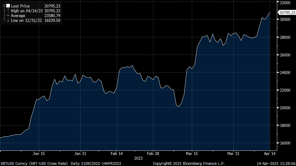 Esta semana el Bitcoin ha superado de nuevo la barrera de los 30.000$ y sube un +80% en lo que va de 2023.