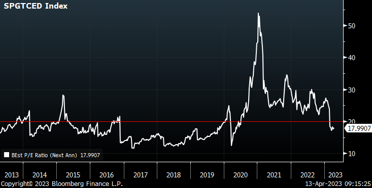 En Estados Unidos se espera una temporada de resultados floja, el consenso de analistas del mercado espera una caída del Beneficio Por Acción para el 1T23 del 6,0%, sobre todo por peores números en compañías sectores más defensivos, se espera una caída en BPA del-13,4% frente al -3,7% del 4T22, frente a la recuperación de compañías del sector financiero, que se espera un crecimiento del +1,3% frente al -9,1% del 4T22 y con las compañías cíclicas más estables, BPA esperado+5,2% frente al +5,9% publicado en el 4T22. El mal guidance facilitado en 4T22 y la revisión del BPA para este 1T23 desde el final de la campaña anterior -1,5% sobre todo por Energía, Materiales Básicos y Financieras vs revisión al alza de Consumo Cíclico, facilita que pueda haber sorpresas positivas por encima del trimestre pasado. No obstante la acogida en mercado seguirá dependiendo de los guidance para el total del año. En este sentido las revisiones a la baja en BPAs para el 2024 deberían ir a más.