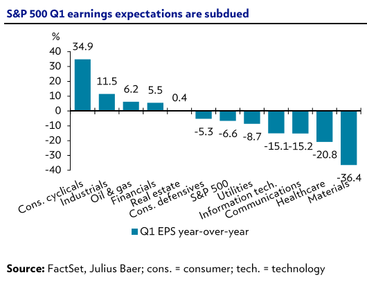 Esta semana ha sido intensa en las publicaciones de resultados de las compañías, y la semana que viene continuará, el consenso de analistas espera una caída del -6.6% en los beneficios empresariales de las compañías del S&P 500 respecto al mismo trimestre del año pasado, sumando el segundo trimestre de caídas consecutivas y siendo, técnicamente, una recesión de beneficios. Las expectativa se han rebajado un -6% los últimos 3 meses y un -15% desde el máximo del año pasado, por lo que será difícil que veamos sorpresas negativas, como hemos estado viendo con los bancos americanos, Johnson&Johnson... El foco estará en el “guidance” que den las empresas, sobre todo en lo que se refiere al reciente endurecimiento de las condiciones financieras.