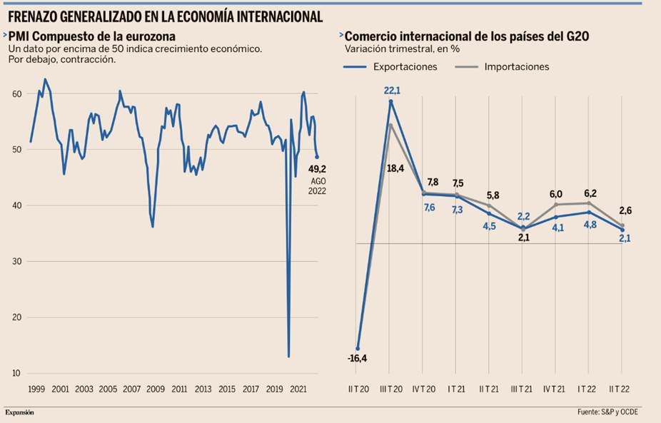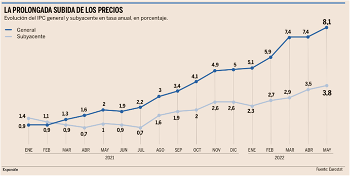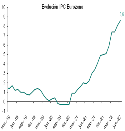 Esta semana ha terminado el mes de Agosto con caídas en prácticamente todas las bolsas mundiales, con excepción de Brasil y Japón. El Ibex, pese a caer un -2,50% (-7,35% desde máximos del mes, que empezó con rebotes) resistió las caídas mejor que la mayor parte de índices europeos (EuroSTOXX 50 -5,1%, -7,3% desde máximos del mes) y en Estados Unidos el S&P 500 cayó un -4% y un -8,13% desde máximos del mes, con una inflación que sigue sin dar tregua, el miércoles se publicó el IPC de la Eurozona que marcó un nuevo máximo en agosto, 9,1% general, 4,3% subyacente, extendiéndose las presiones inflacionistasmás allá de energía y alimentos, y muchos analistas ya descuentan que el Banco Central Europeo vaya a subir tipos 75 puntos básicos la semana que viene (8 de Septiembre), lo que mete presión a las bolsas. En Estados Unidos el tipo del bono a 2 años marcó un nuevo récord esta semana desde 2007 en 3,51% y las TIRes a 10 años continúan al alza acercándose a sus máximos anuales, está actualmente en el 3,25% (Reino Unidos ya los ha tocado). Esta semana también hemos tenido malas noticias para crecimiento e inflación (impacto en cadenas de producción) desde China, que anuncia el confinamiento indefinido de Chengdu, 21 millones de habitantes, 1,7% del PIB chino, tras detectar 900 casos de Covid, es el confinamiento más grande desde el de Shangai en abril y mayo.