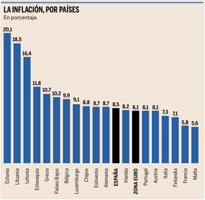 Ahora, los precios siguen subiendo y el elevado retraso que se ha producido en la reacción de los bancos centrales, especialmente el que rige nuestra política monetaria, el BCE, ha permitido que la inflación se haya enroscado en toda la cadena de valor, convirtiéndose ya, en muchos, casos, en estructural, con unas subidas de los precios de los alimentos entre el 15% y el 20% –y en algunos casos, más–, que merma la capacidad de compra de las familias. Al mantener durante más tiempo la liquidez abundante, no ha provocado ningún ajuste y, con las reglas fiscales suspendidas, el sector público sigue aumentando el gasto de manera exponencial, tremendamente irresponsable en el caso del Gobierno español, lo que tensa más los cuellos de botella y presiona al alza los precios.