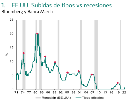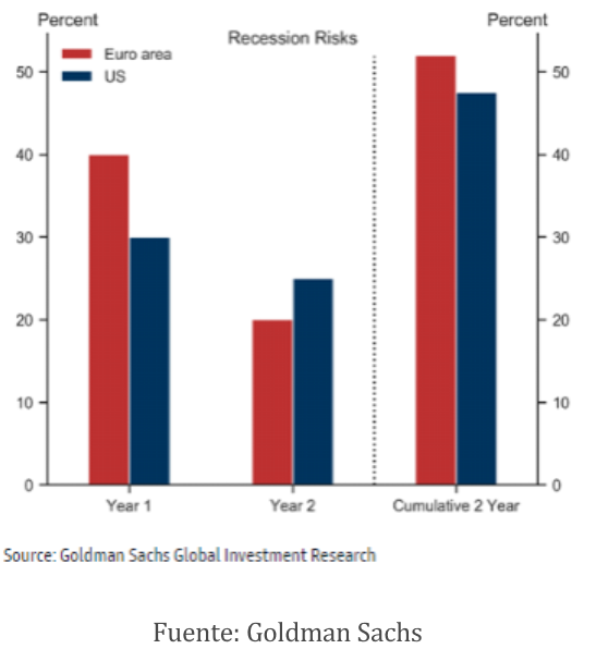 Si es probable que el endurecimiento previsto de la política monetaria genere una recesión en EEUU, ¿qué podría ocurrir en Europa? La respuesta es que es probable que las recesiones en la zona euro sean profundas dado que el impacto del precio de la energía es muy grande. Tampoco en este caso el equilibrio entre el impacto en la oferta y la demanda está claro. Si el impacto de la subida de los precios de la energía en la oferta es mayor que en la demanda, también habrá que frenar ésta.