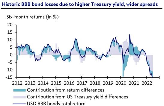 Según un informe de Bank of America en 2022 ha habido 19 días en los que los diferenciales sobre el midswap de la deuda corporativa europea se han movido cinco puntos básicos o más, un movimiento muy raro de ver y que sólo se produce en momentos de intenso estrés. En 2008 y 2011 fueron 25.