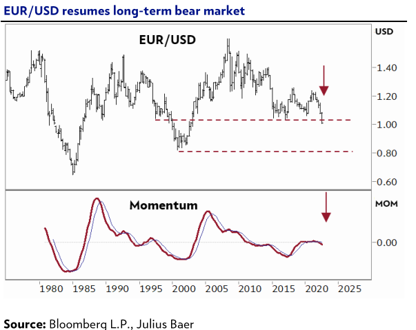 Un punto de inflexión similar puede estar cerca. Y esta vez, la caída de la moneda estadounidense podría durar aún más.