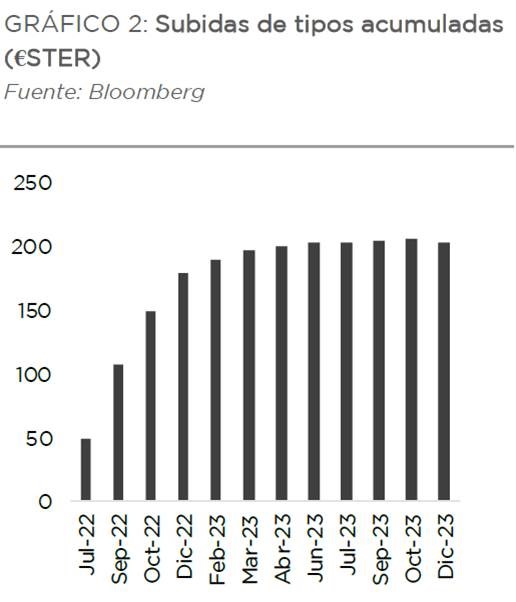 Adicionalmente, dicho retraso en la aplicación de una política monetaria restrictiva hace que las medidas que se han de adoptar ahora sean más intensas y duras de lo que tendrían que haber sido si se hubiesen adoptado hace un año o, al menos, a comienzos de 2022, con lo que el impacto negativo en la economía será mayor, con un incremento superior al que entonces habría sido necesario en los tipos de interés, que encarece la financiación de todos los agentes económicos: limitará la capacidad de maniobra del sector público, que tendrá que reducir otros gastos esenciales para pagar el mayor coste de la deuda; las empresas podrán financiarse peor y más caro, elemento que estrangulará a las pymes; y las familias verán cómo, tras la pérdida de poder adquisitivo por la inflación, vuelven a perder renta disponible para el consumo y el ahorro por la subida de las cuotas hipotecarias al incrementarse los tipos de interés.