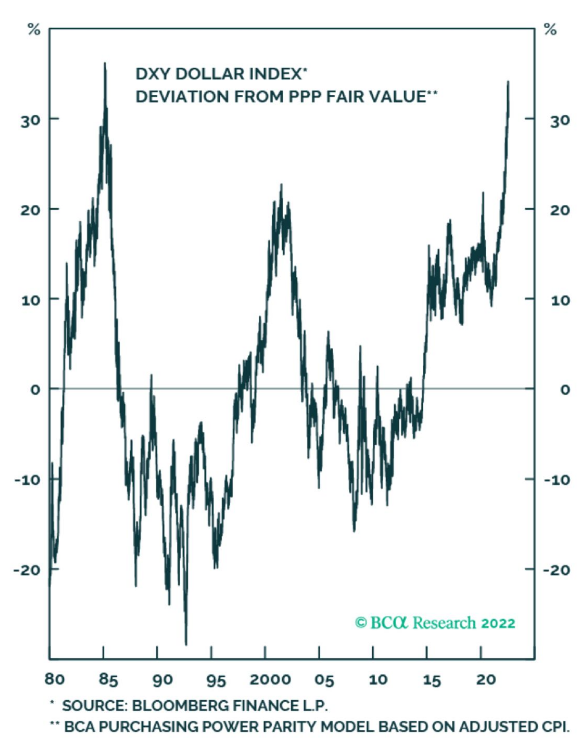 Ajustado o no a la inflación, el valor del dólar frente a otras divisas de referencia se encuentra ahora un 20% por encima de su tendencia a largo plazo y superan el máximo alcanzado en 2001. Este auge cumple el undécimo año. Además, los desequilibrios fundamentales son un mal augurio para el dólar.