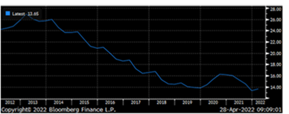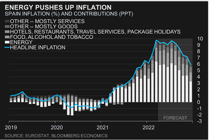 Para el consumidor, una combinación de aumento de los tipos y los precios de los alimentos y la energía están mermando la demanda. Sin embargo, los ahorros acumulados durante Covid sugieren que el pánico puede ser exagerado. Los datos del mercado laboral del Reino Unido mostraron otra caída en la tasa de desempleo al 3,7% con más vacantes que desempleados en el país. En la otra cara de la moneda, la semana pasada los datos de inflación en el Reino Unido sorprendieron con su aumento del 9% interanual, pero esto no fue peor de lo esperado, con tres cuartas partes del aumento explicado por el aumento de los precios del gas y la electricidad.