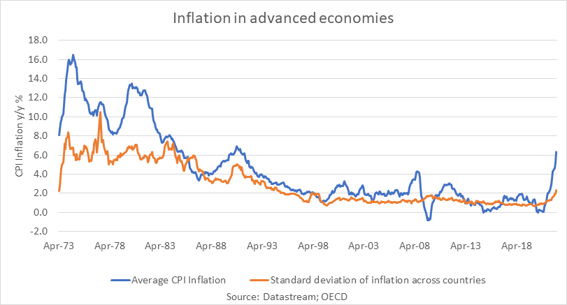 Las similitudes son evidentes entre el actual repunte “por sorpresa” de la inflación hasta niveles no vistos en cuatro décadas y aquella era, en la que la inflación también supuso una sorpresa para casi todo el mundo, excepto para los monetaristas. Esa época estuvo igualmente caracterizada por la guerra: la del Yom Kippur de 1973 y la invasión de Irán por Irak en 1980. Estas guerras también provocaron saltos en los precios del petróleo, que redujeron los ingresos reales. EEUU y otras economías de altos ingresos vivieron casi una década de alta inflación, crecimiento inestable y mercados bursátiles débiles. A lo que siguió una fuerte desinflación con Paul Volcker al frente de la Reserva Federal, y el giro de Reagan-Thatcher hacia el libre mercado.