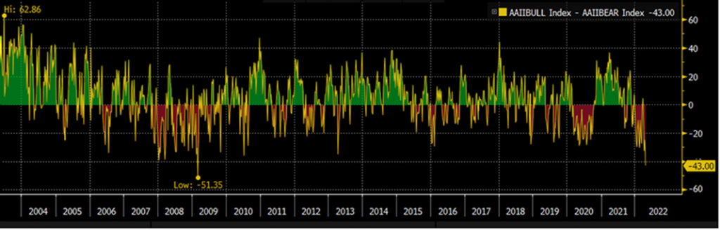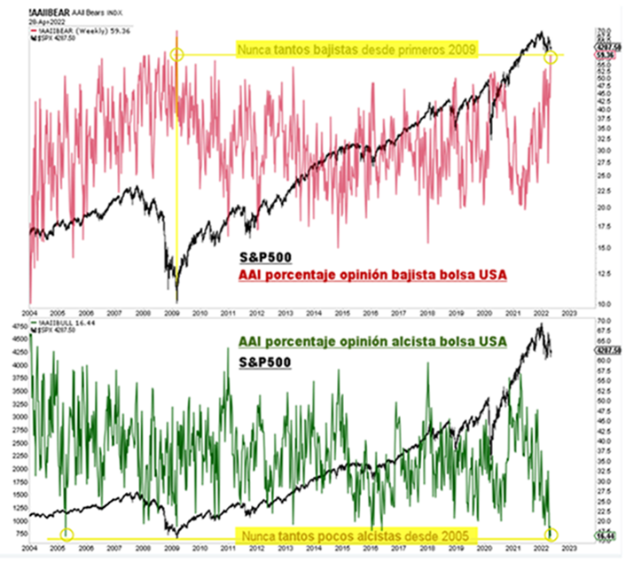 Algunos indicadores de sentimiento de mercado indican que las Bolsas todavía podrían corregir más, con lo que al mercado todavía le puede quedar una caída adicional del 10%-15%.