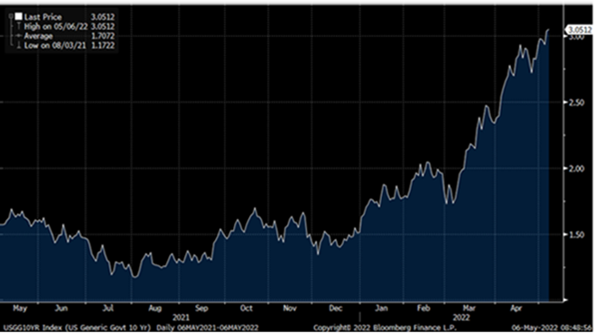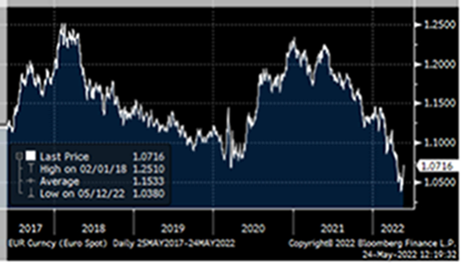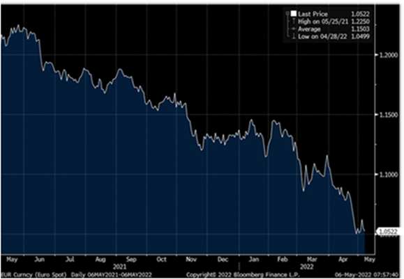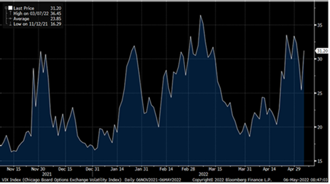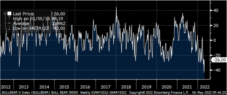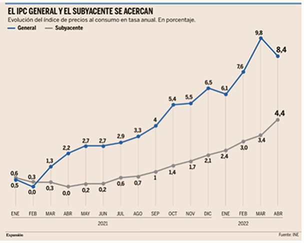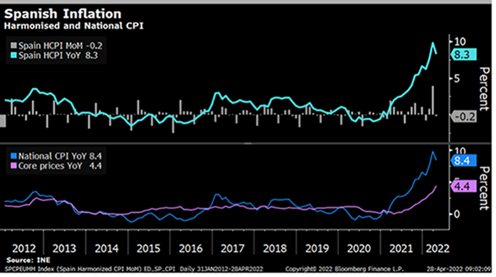 Los mercados continúan preocupados con la posibilidad de una recesión en el próximo año. Los datos de vivienda de Estados Unidos sugieren que los tipos de interés-hipotecas más altas están comenzando a mermar la confianza en el sector. En el Reino Unido, la confianza del consumidor cayó al nivel más bajo desde que comenzó la encuesta (GfK) en 1974. En cuanto a Europa, las matriculaciones de automóviles cayeron un 21% interanual en abril, extendiendo la caída de marzo.