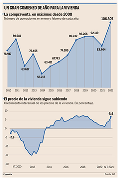 Los precios de la vivienda en España continúan subiendo el primer trimestre del año por séptimo trimestre consecutivo. En el primer trimestre del año los precios de las viviendas han subido un 2,40% frente a la subida del 2% del 4T21. Es la mayor subida intertrimestral desde Junio del 2006.