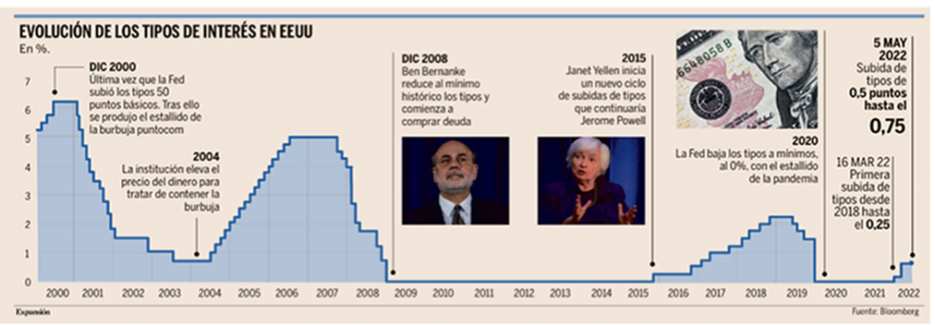 El miércoles se publicaron las Actas de la Fed que no depararon sorpresas al telegrafiar subidas de 50 puntos básicos en las reuniones de junio y de julio, evitando la opción más agresiva de subir 75 puntos básicos, advirtiendo algunos miembros que sería necesario una política restrictiva.
