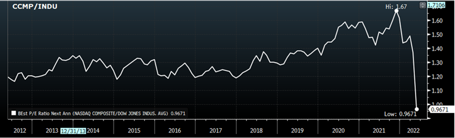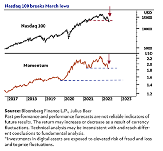 “We downgrade DM stocks to neutral due to uncertainty over policy amid a worsening macro picture. Their appeal relative to bonds has also diminished. The risk has risen that central banks slam the policy brakes as they focus solely on inflation without fully acknowledging the high costs to growth and jobs. We cut U.S. equities to neutral. The Fed’s hawkish pivot has raised the risk that markets see rates staying in restrictive territory. The year-to-date selloff partly reflects this, yet we see no clear catalyst for a rebound. We cut European equities to neutral as the fresh energy price shock in the aftermath of the tragic war in Ukraine puts the region at risk of stagflation”.