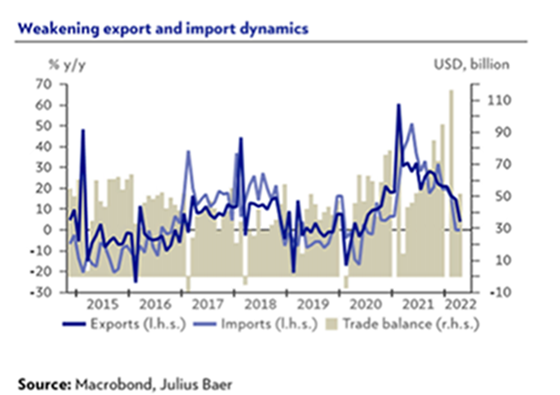 La desaceleración de las economías desarrolladas tiene su origen en la fuerte inflación, que ha laminado el consumo, el golpe al comercio internacional provocado por la guerra en Ucrania y la incertidumbre, agravada por este conflicto. Todo ello ha causado un frenazo súbito en las economías desarrolladas del que será difícil recuperarse en el corto plazo, debido a que los países de la OCDE representan el 60% de la economía mundial. Por lo tanto, la caída de la demanda de este grupo de países, aunque sea puntual, tendrá un gran impacto sobre las inversiones y las exportaciones del resto de países, incluso aquellos que han evitado el boicot a Rusia, como es el caso de China.