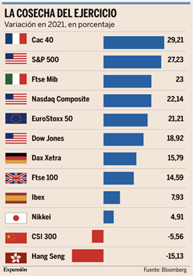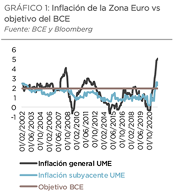 Por su parte, el Banco Central Europeo (BCE) sigue siendo reticente –o, al menos, lo era hasta esta decisión de la Fed; ya veremos ahora si modifica su postura– a la hora de tomar la iniciativa de una subida de tipos. Se limita a reducir las compras de deuda, pero no aplica una subida de tipos mientras la inflación empieza a descontrolarse en la zona euro.