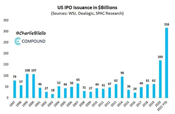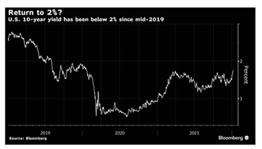 En Estados Unidos, la producción industrial subió un +0,5% mensual en febrero (+7% interanual), las casas iniciadas se incrementaron un +6% mensual y las peticiones de subsidios de desempleo se situaron claramente por debajo de niveles prepandemia.