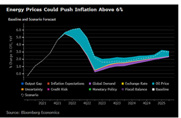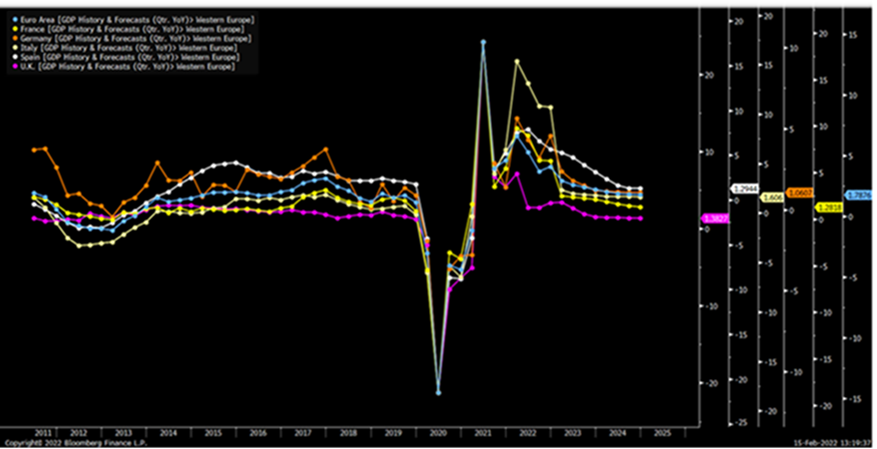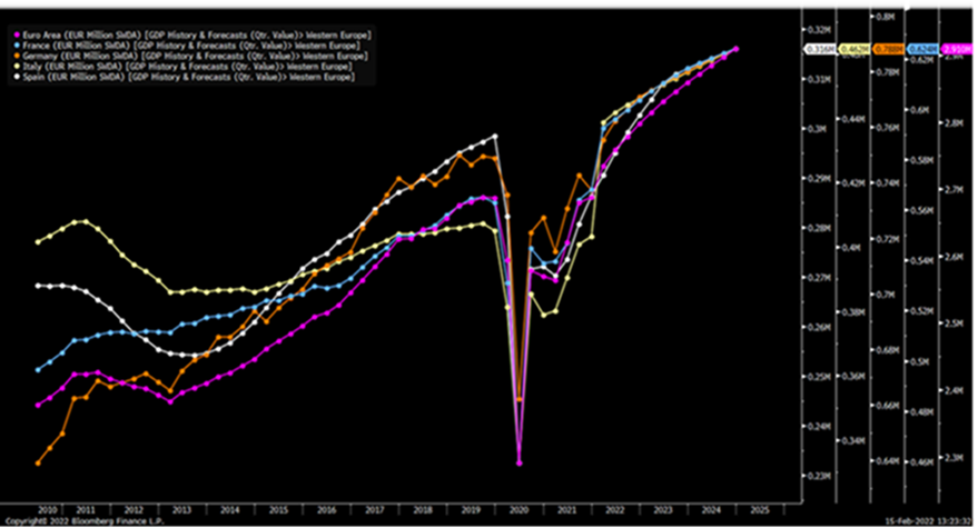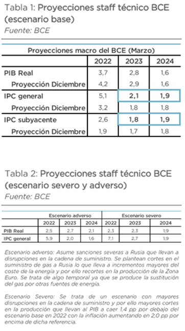 El BCE, que aceleró la semana pasada la reducción de sus compras de bonos, lo hizo sobre la base de unas previsiones económicas que apuntan a una mayor inflación, causada por el aumento de los precios de las materias primas, pero con una tasa de crecimiento aún decente. En su peor escenario alternativo “severo”, el crecimiento de la zona euro será del 2,3%. Y la OCDE sugiere un impacto de un punto porcentual en el crecimiento mundial por la guerra (y de 1,5 puntos en la zona euro).
