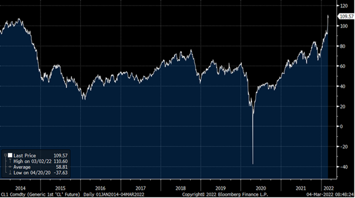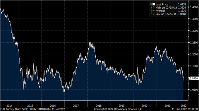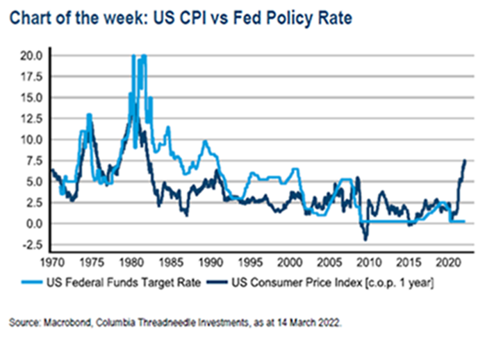 El IPC de Estados Unidos subió un 7,9 % en los últimos 12 meses (frente al 7,5 % del mes pasado) a un nuevo máximo en 40 años. Esta publicación de datos cubrió principalmente un período anterior al aumento más reciente en los precios del petróleo. La subyacente, que excluye los volátiles precios de los alimentos y la energía, aumentó un 6,4%, esto ha provocado que la Fed subiera tipos esta semana por primera vez desde el 2018, como luego comento.