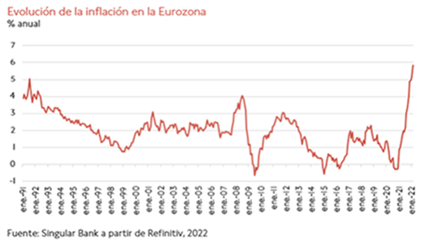La inflación en Estados Unidos es preocupante, con un 7,9% en febrero, un registro que no se veía desde hace cuatro décadas. Aunque la Fed tiene como objetivo principal estimular el crecimiento económico, la presión inflacionista es de tal magnitud que no puede permitir que se descontrolen los precios por el problema que supondría especialmente a medio y largo plazo, con pérdida de competitividad de su industria en los mercados y empobrecimiento generalizado de la población, máxime en un contexto económico adverso, que puede provocar la temida estanflación.